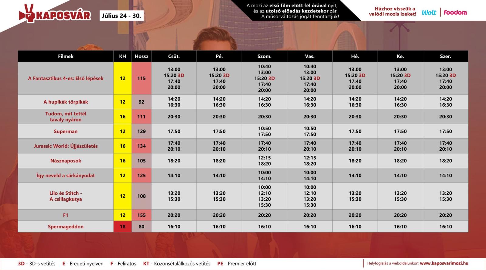 A kaposvári Kultik Mozi műsora 07.24-től