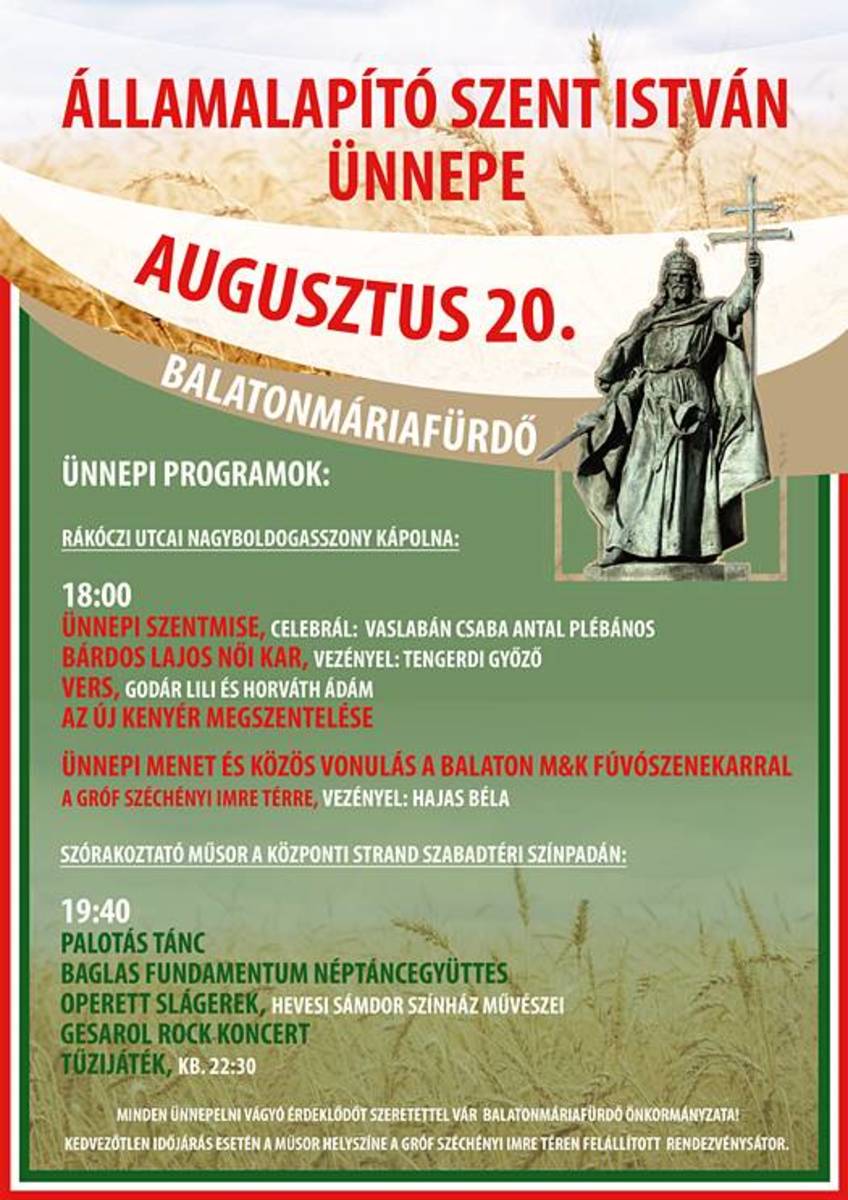 Augusztus 20. programok Balatonmáriafürdőn