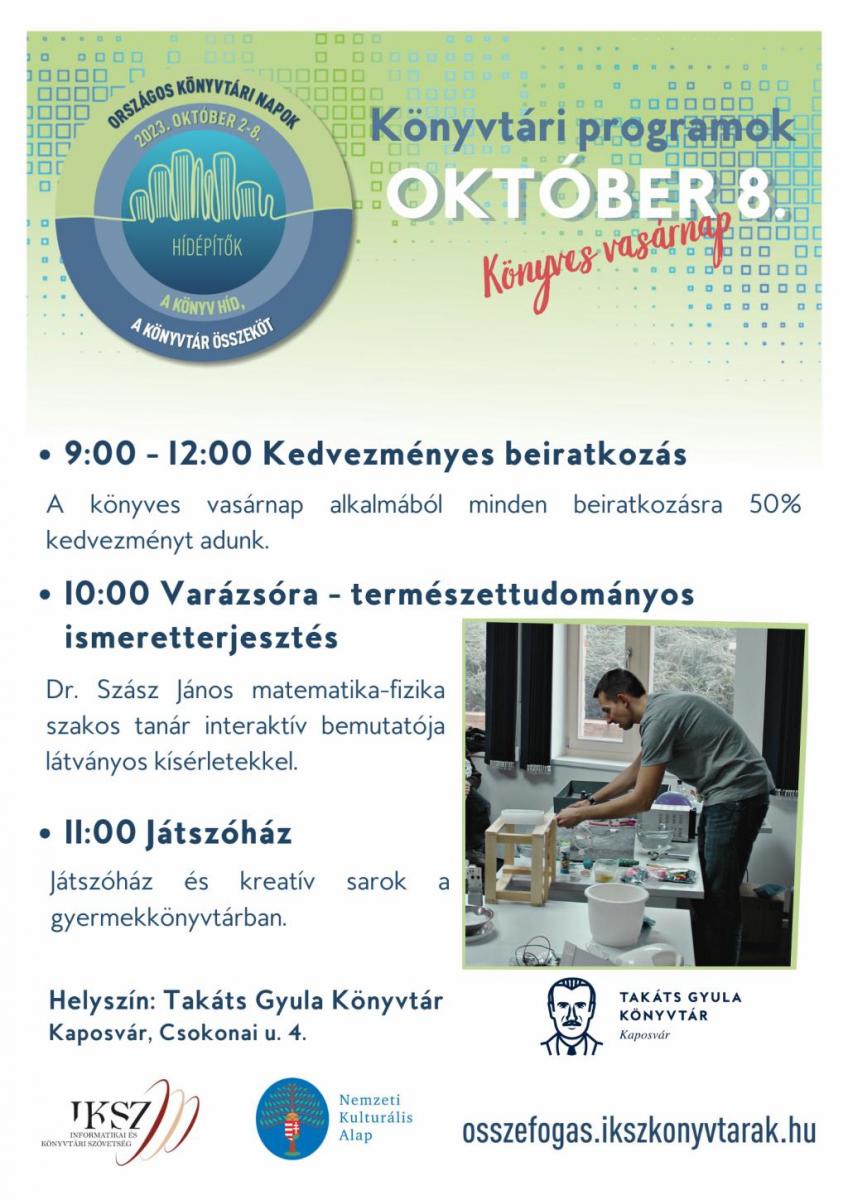 Kedvezményes beiratkozás a kaposvári könyvtárban a könyves vasárnapon